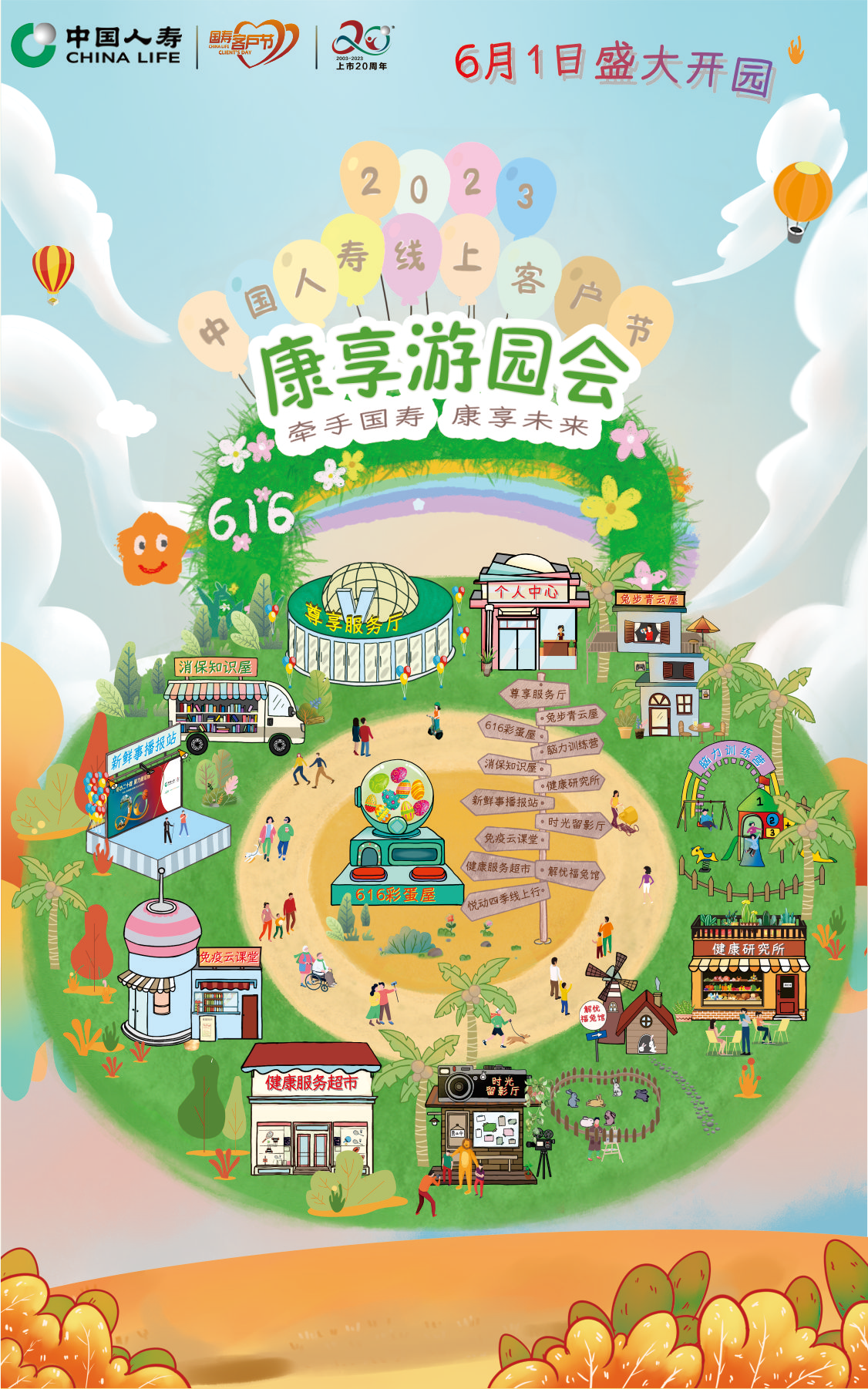 今年线上客户节将精心搭建“康享游园会”线上场景,打造2大专区、13个站点,围绕客户关注的“健康促进、健康权益、养老服务”需求,结合日常趣味互动、616全民狂欢推出系列特色活动。