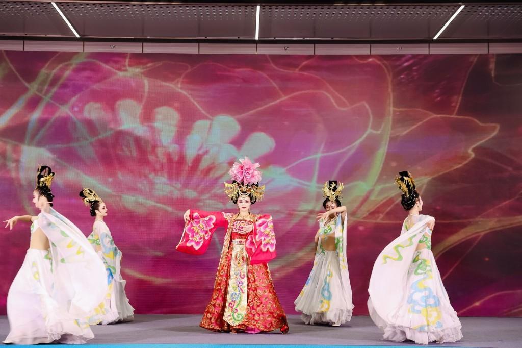 推介会在《丝路驼铃》民乐演奏中拉开帷幕,悠扬婉转的曲调,让现场嘉宾深切感受到丝路文化和民族音乐的交相辉映。陕北民歌、合阳提线木偶两项陕西非物质文化遗产项目相继登场,展现了陕西独具特色的音乐、戏曲文化。压轴亮相的仿唐乐舞《霓裳羽衣舞》,舞者用精湛的舞姿跳出了盛世大唐的神韵,表达了陕西开放包容,喜迎八方宾客的胸怀。