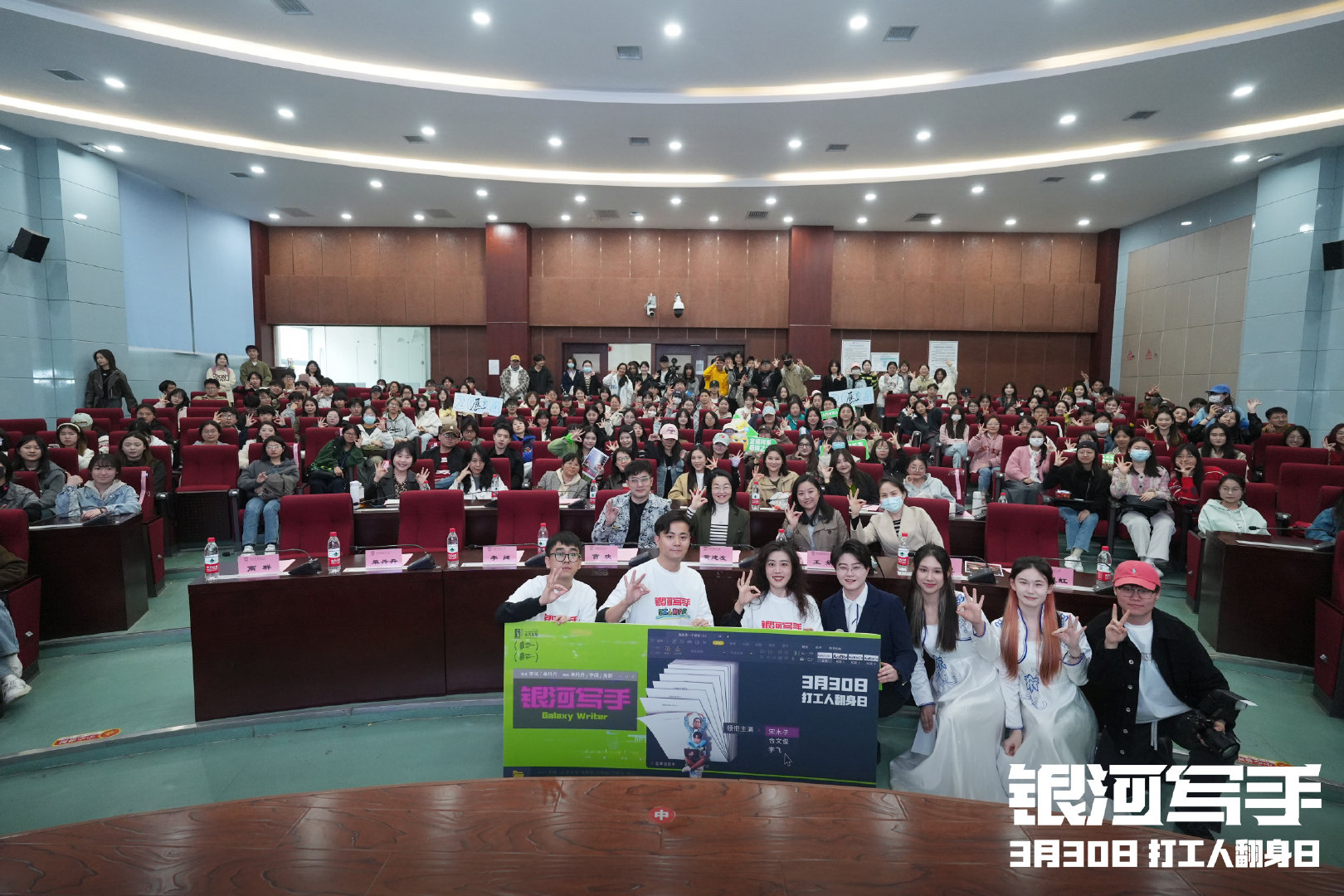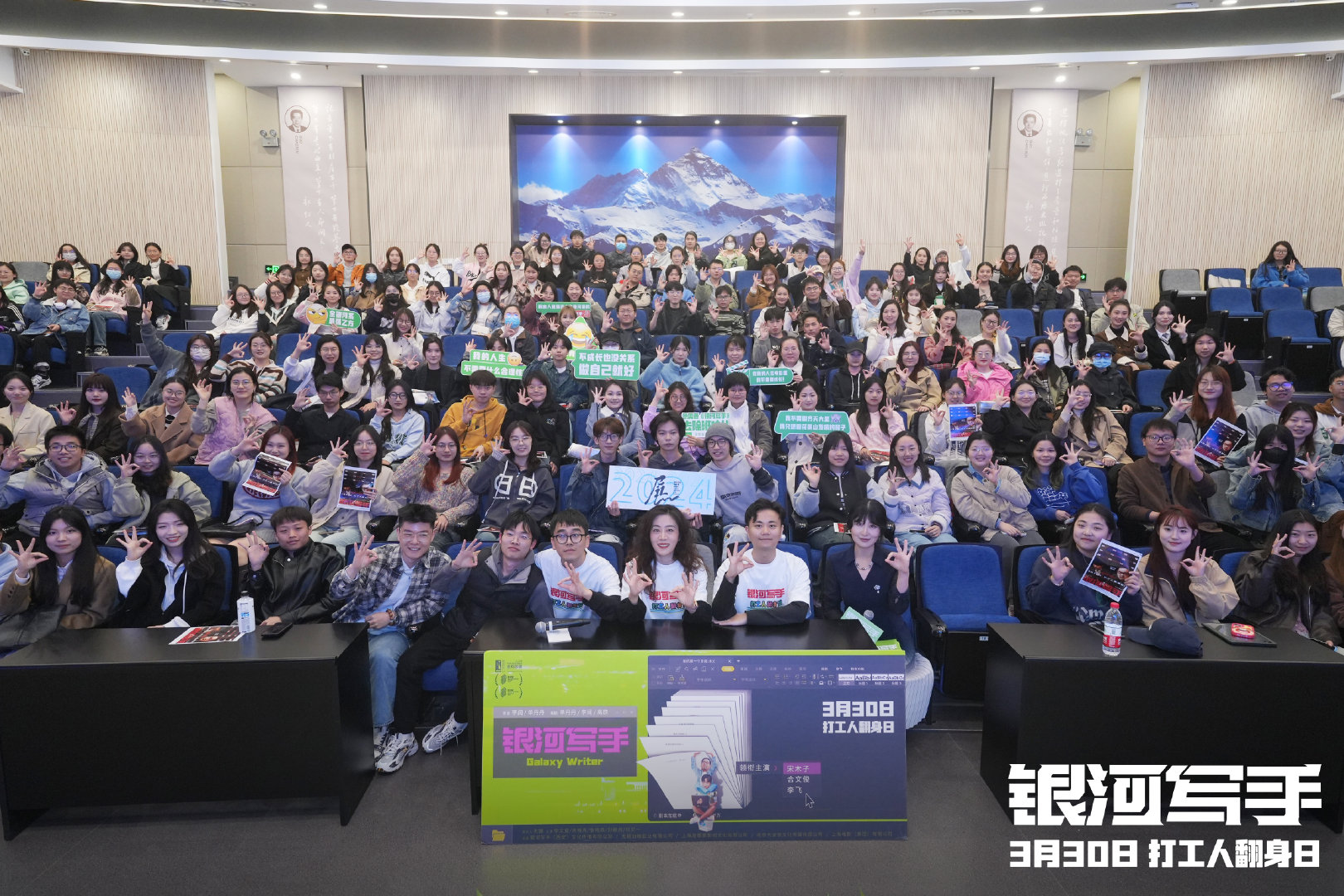 3月26日,电影《银河写手》导演/编剧李阔、单丹丹和编剧高群来到了全国路演第二站——西安。值得一提的是,这也是李阔的家乡。在西安外国语大学放映后,李阔提及影片与西安的缘分,“西安是一个历史悠久也很大胆的城市。虽然电影拍的不是西安,是北漂生活,但电影中自由、天马行空和大胆的部分,跟我在这片土地上的成长密不可分。”西外同学在互动时提问主创很好奇新导演的创作,李阔导演回应表示“新手团队的第一部电影,我们希望是年轻的、横冲直撞的,是不装的。如果电影是一个人,有年龄的话,可能它就是刚成年的人,身上有一股猛劲,像在座的各位一样。”单丹丹导演、高群编剧也鼓励正面临学业与就业压力的学子们,“成长有很多种答案,无论考研还是工作,选择自己最想的方式,不要跟别人比,跟自己比就好”、“可以叛逆一点,不用那么听话也可以的”。