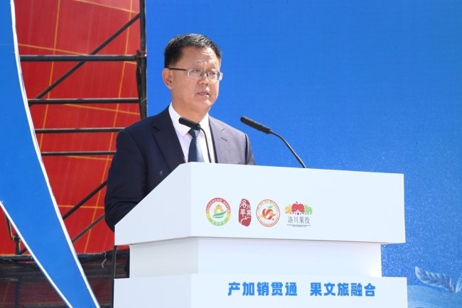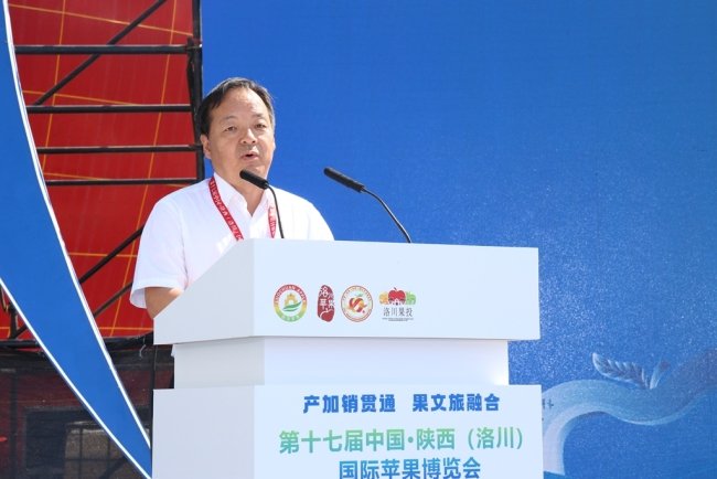 张继东在致辞中说,近年来,洛川县大力发展苹果产业的一系列重要指示和要求,紧盯构建现代苹果产业体系,突出农民增收,聚焦智能化、绿色化、融合化的特质,对标完整性、先进性、安全性的要求,走出了一条“八链同构、三产融合”的苹果全产业链高质量发展新路,将“小苹果”建设成为了“大产业”,有力促进了一、二、三产融合,加速了乡村振兴步伐。洛川县将积极贯彻落实党的二十届三中全会精神,坚持以陕西省委“三个年”活动为抓手,主动融入延安市委“一六四”工作布局和“12345”年度工作安排,把强县和富民统一起来,把改革和发展结合起来,把城镇和乡村贯通起来,聚焦“五集五区”功能定位,以产兴城、以城带乡、城乡互动,全力建设省级苹果产业集群化发展示范县,努力实现果业强、果农富、果乡美的奋斗目标。