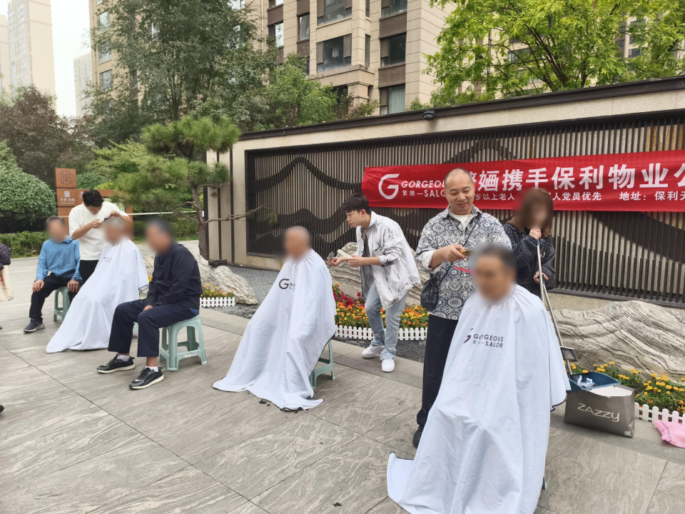 前来剪发的老人络绎不绝,现场也是欢声笑语,热闹非凡、忙碌有序。活动现场洋溢着浓浓的爱老敬老氛围,保利物业工作人员与老人亲切交流,询问他们的需求,在老人回家的时候不忘叮嘱他们要保重身体,并送上一句节日祝福。