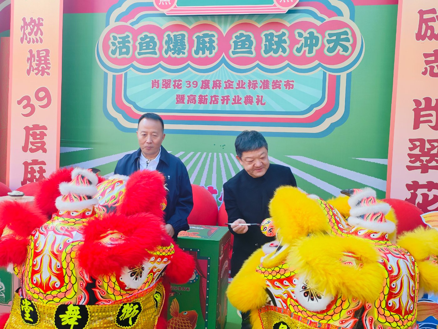 10月22日,肖翠花“39度麻”企业标准发布暨高新店开业典礼在万众期待中隆重举行。活动现场吸引了八方来宾到场庆贺,行业协会代表、知名企业贵宾、合作伙伴以及媒体的目光共同见证肖翠花爆麻鱼高新店的华丽绽放。舞狮表演、资深川剧变脸、“掘金大圣”悟空机甲的出现…..现场人声鼎沸,热闹非凡,吸引了众多市民和“网红”前来,为表演喝彩、为美味点赞。