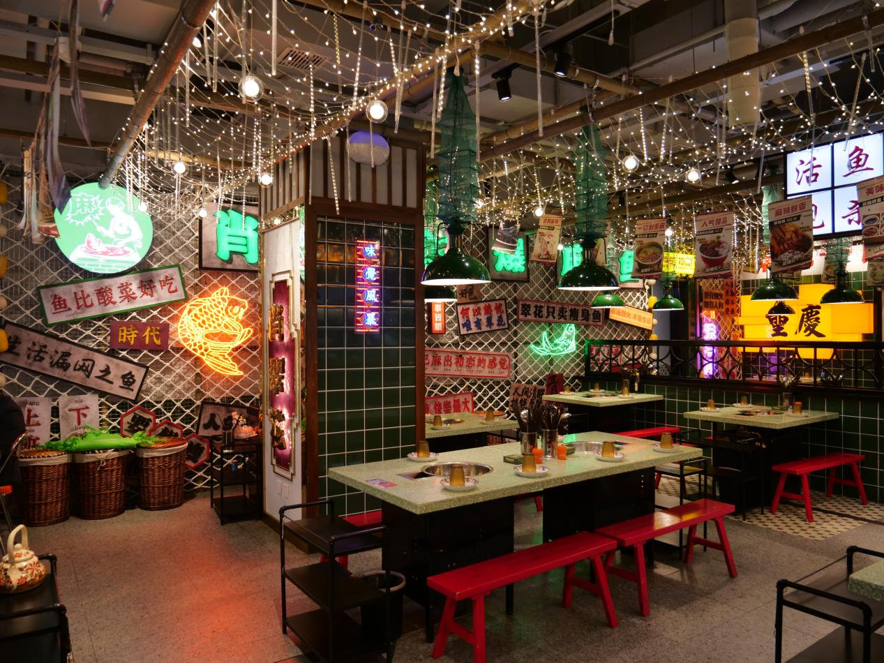 食有五味,人有五情。谈及饮食文化,中国人从来都是当仁不让。肖翠花爆麻鱼高新店,坐落于代表经济活力的高新商圈,紧邻西安地铁三号线科技路站。四周环绕国际商业中心,商业繁华,交通便捷。设计风格简雅大方,将现代西方爽利明快的线条与中国传统的工笔彩绘结合,绘制出千百年的盛世繁华和先锋创新的时代精神。