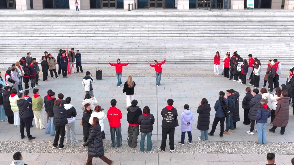 延安革命纪念馆里,黑白照片、珍贵文物串联起壮阔征程,同学们沉浸式重温革命先辈坚守信仰、浴血奋战的岁月。广场上,学子们以《如愿》《万疆》等歌曲串烧与舞蹈演绎,展现青春的红色气质。红色主题演出《延安 延安》再现革命岁月,当《保卫黄河》旋律响起,师生们齐声跟唱。