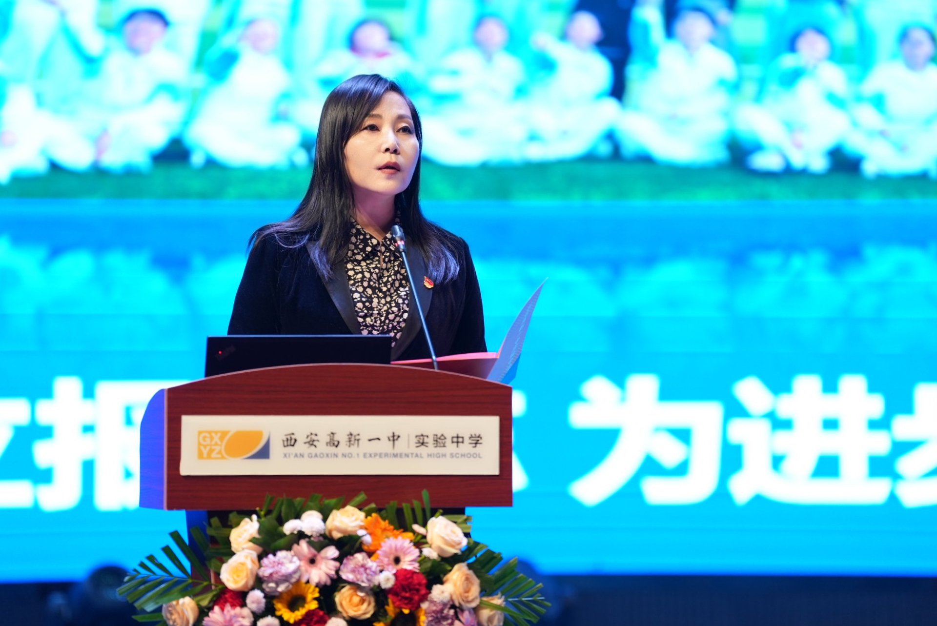 西安市教育科学研究院高中部副主任、教研支部书记冯俊玲,在致辞中肯定了学校办学成效,希望活动能汇聚智慧、激发思考,助力人工智能时代高品质课堂构建与教育理念落地,为学生终身发展和民族复兴奠定基础。