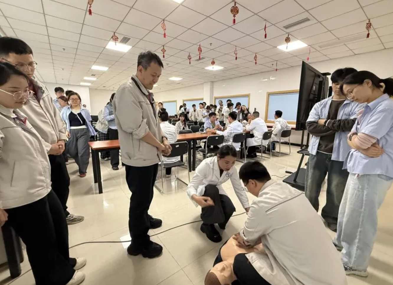 心血管疾病诊疗中心樊星莹同步开展心肺复苏(CPR)急救技能培训,通过理论讲解、模拟演示、手把手实操教学,让职工快速掌握突发心跳骤停应急处置要点,筑牢职场生命安全防线。神经外科方琪星医生普及颅脑损伤、脑血管疾病预防与早期识别知识,提升职工健康防护意识。